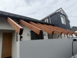 駐車場へ最近再設置したバーゴラヘ腐食防止で